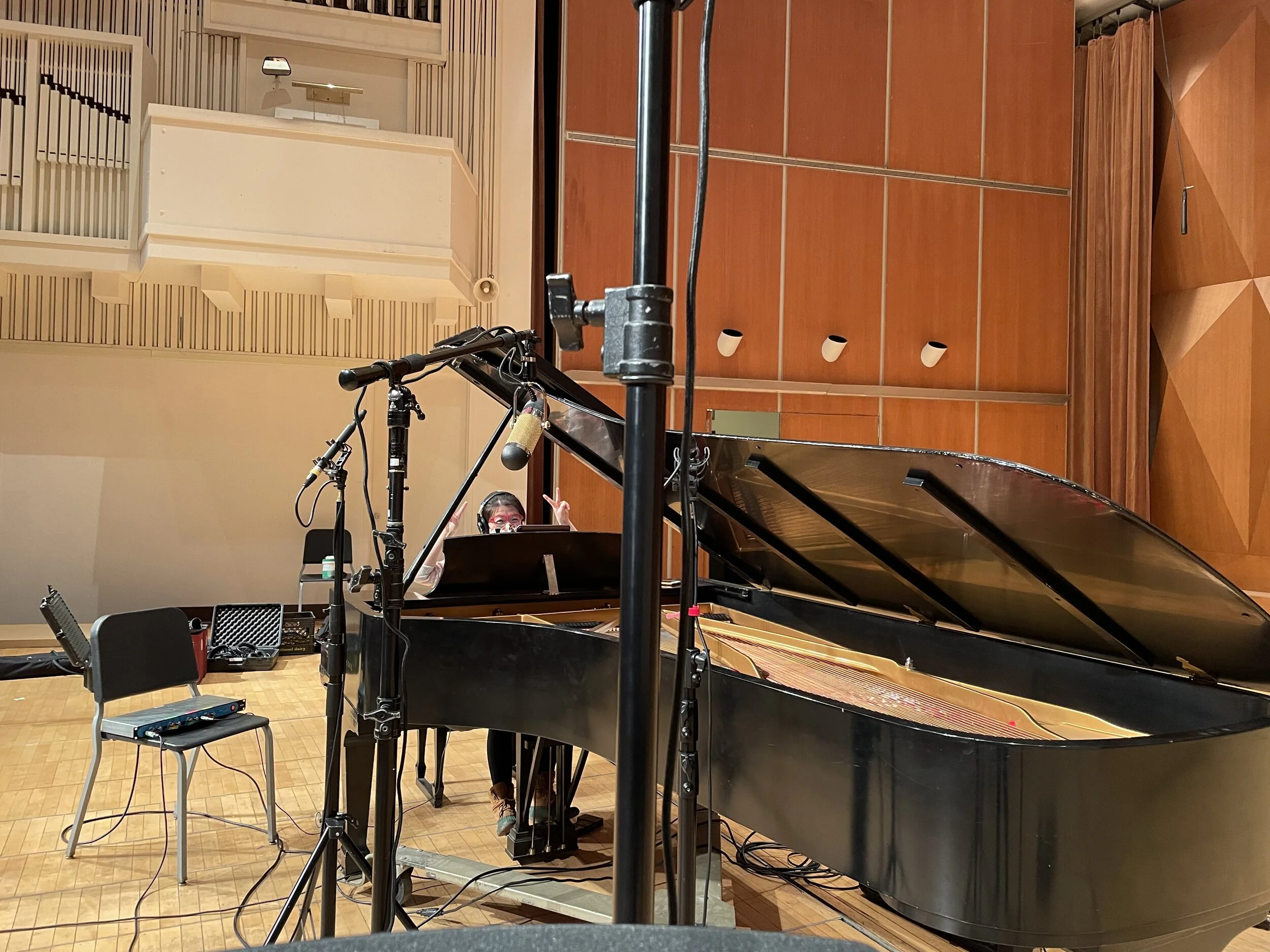 Shuai Wang at the piano during the recording session at CIM’s Kulas Hall
