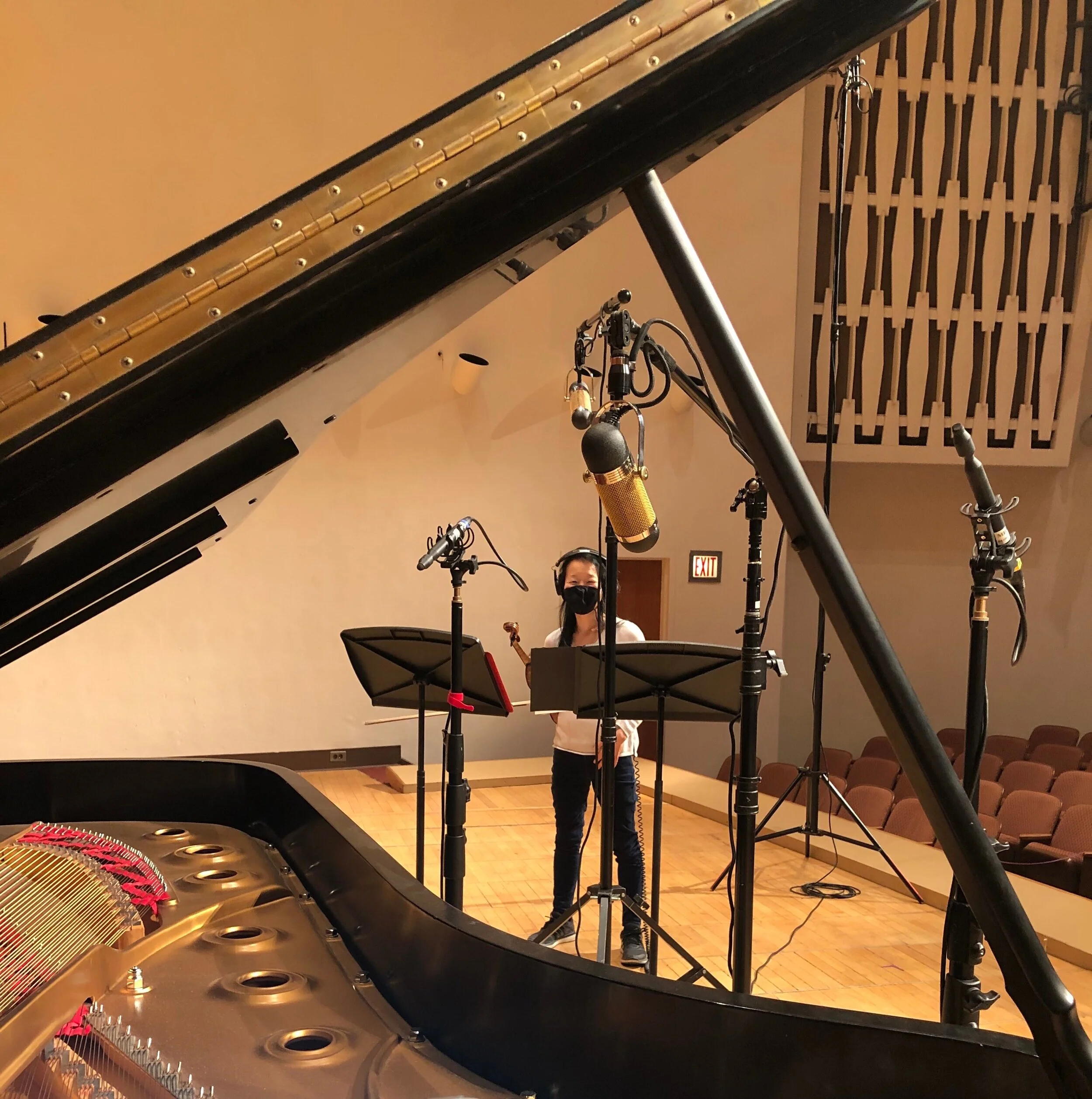 This video was taken during a rehearsal where the violinist and pianist played along to an iphone recording of the singer since she lives in Los Angeles and cannot record with us in person